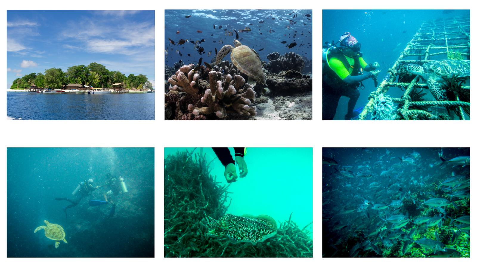Pom Pom Island combines beautiful reefs with active turtle conservation programs. Divers frequently encounter turtles during snorkelling and diving sessions.