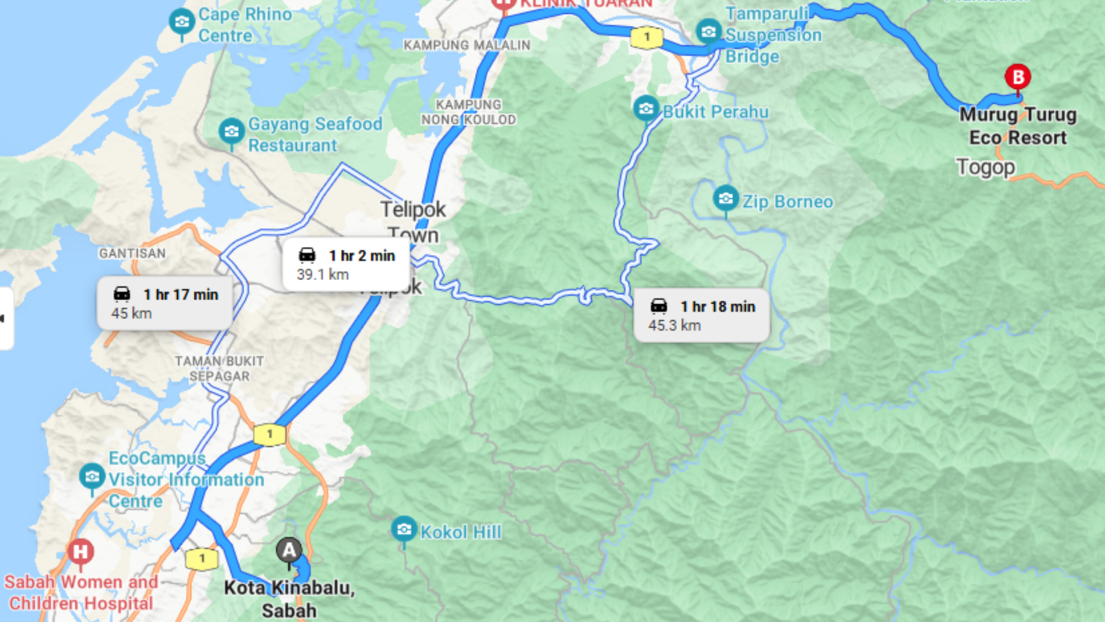 | Kundasang | 1 hr 30 min – 2 hrs |