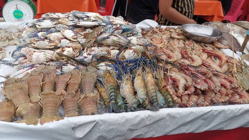 2. Pick your seafood — fish, prawns, squid, or crab.