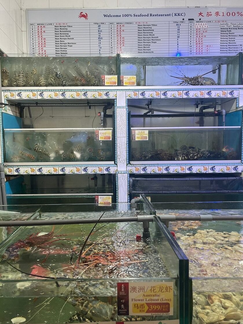 Customers can choose from grouper, red snapper, and pomfret, alongside mussels, scallops, oysters, and lobsters. Each is cooked in a variety of styles including steamed, fried, or stir-fried.